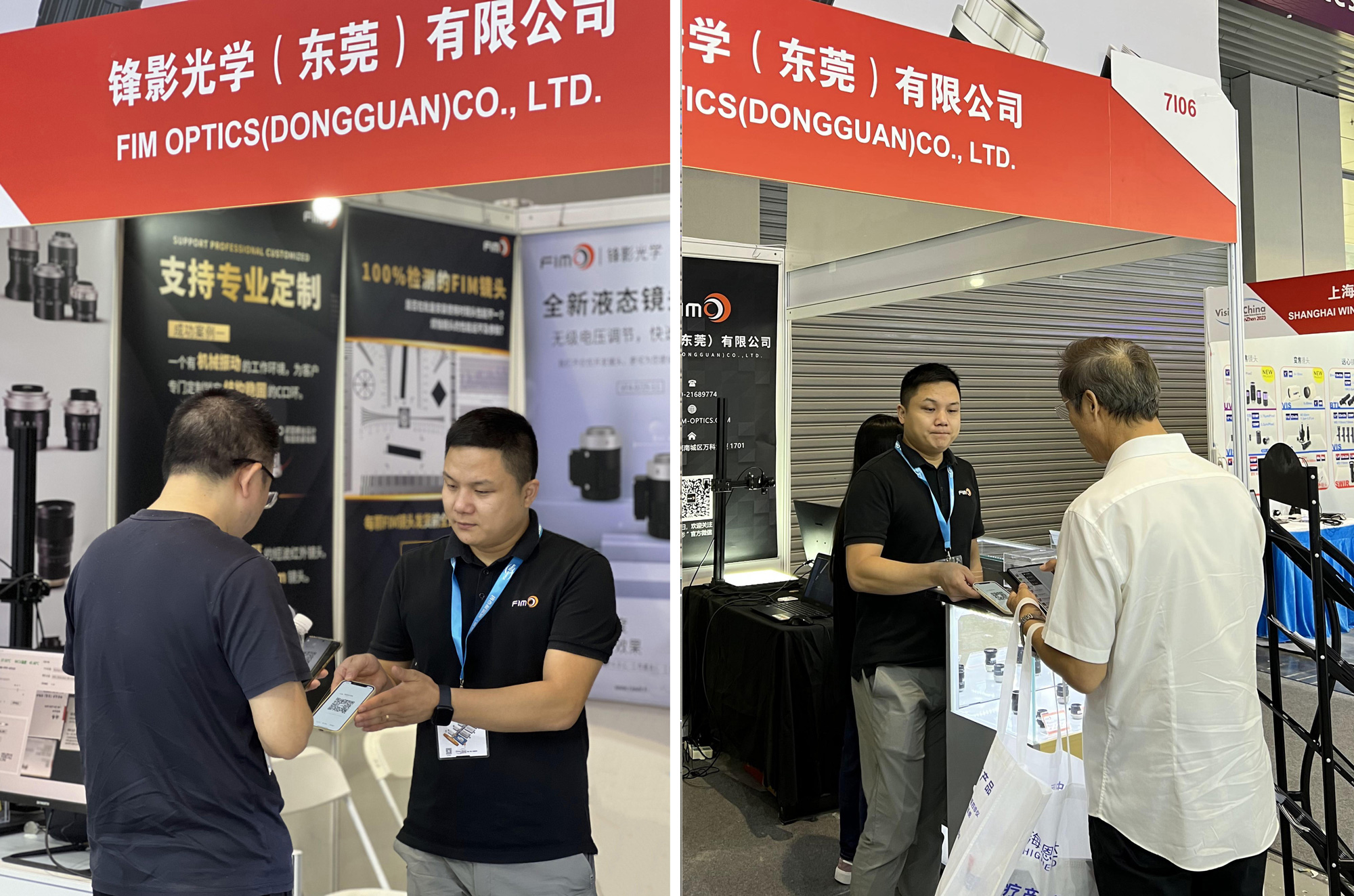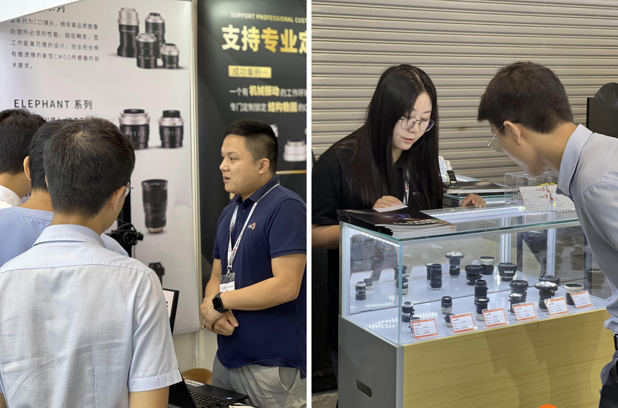 FIM Optics booth attracted the attention of many visitors, and we displayed the latest 116mm focal length of large target line sweep industrial lenses, various specifications of FA, shortwave infrared, telecentric and liquid lenses, covering a variety of applications. During the exhibition, our engineering team provided visitors with a full range of technical advice and answers, so that they have a deeper understanding of our products.