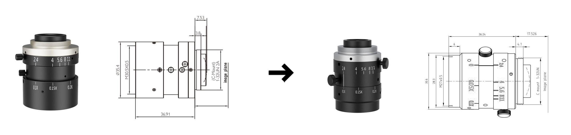基于目前应用端对小体积镜头的要求越来越多,为了不断满足市场需求,提高用户体验,我们积极听取了市场的声音,对2/3"靶面35mm、25mm、50mm三款型号产品进行了升级。